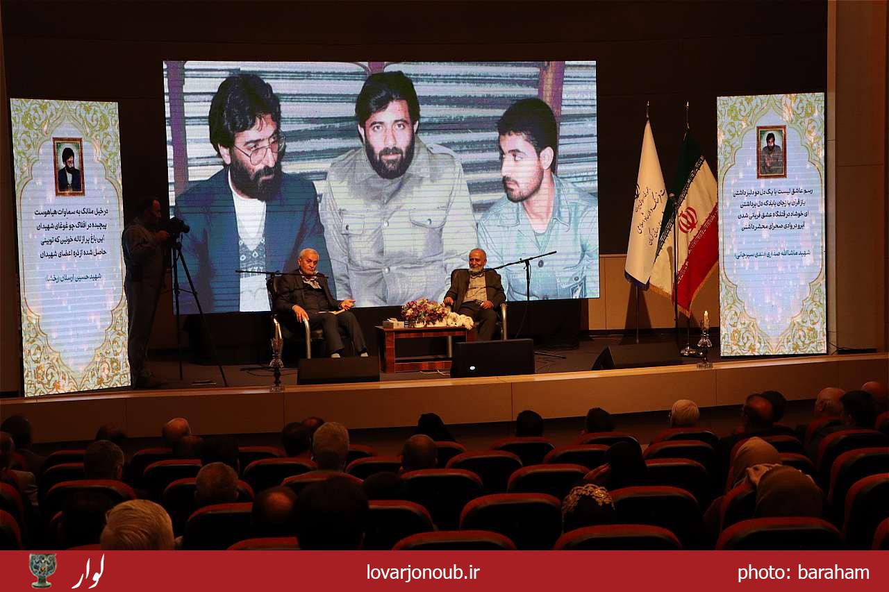 در این مراسم حسین نیلی احمدآبادی مدیرکل فرهنگ و ارشاد اسلامی استان کرمان (در فاصله سال‌های ۱۳۵۹ تا ۱۳۶۸) نیز به بیان خاطراتی از آن دوران پرداخت و عنوان کرد: در دوران دفاع مقدس، گروه ۳۰ نفره از جمله هشت نفر از شاعران، تعدادی از فعالان تئاتر، خوشنویسان و طراحان و فیلم با عنوان «کاروان شعر و ادب و هنر» از سوی اداره‌ کل فرهنگ و ارشاد اسلامی استان کرمان به مناطق عملیاتی اعزام شدند.